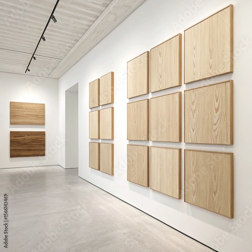 Minimalist Light Wood Panel Gallery Wall in White Room