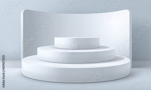 Minimalist, light-gray podium display