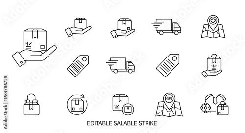 Minimalist Line Art Icons Depicting Delivery, Shipping, and Logistics Services