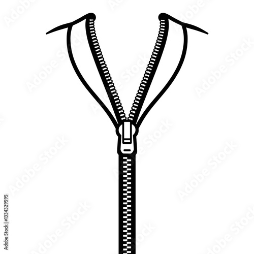 Minimalist line art illustration of a zipper on a white background
