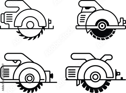 Minimalist Line Art Illustrations of Circular Saws in Grid Format