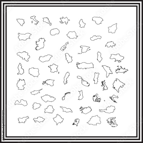 Minimalist Line Art of European Country Maps – Outline Silhouettes of Europe’s Nations