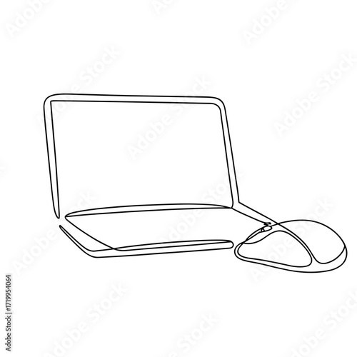 Minimalist line art of laptop and computer mouse on white background