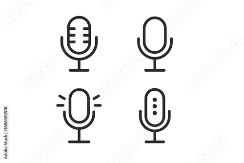 Minimalist Linear Microphone Icons Set for Audio, Podcasting, Recording, Sound, Voice, Streaming, Broadcasting Designs, Vector Cartoon Illustration, Transparent Background