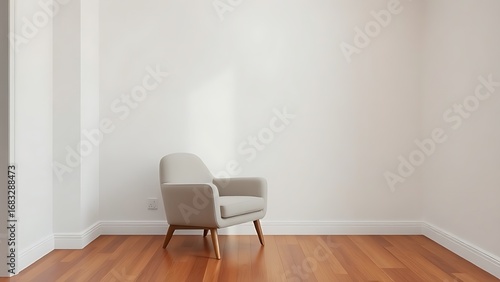 Minimalist living room corner featuring a single armchair, embodying simplicity and calm.