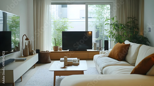 Minimalist Living Room Interior Design with White Sofa and Natural Light