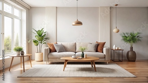 Minimalist Living Room: Modern Couch & Coffee Table Interior Design Stock Photo
