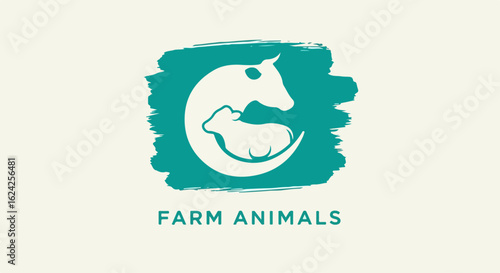 Minimalist logo of a horse head and calf silhouette using negative space within a teal brush stroke.