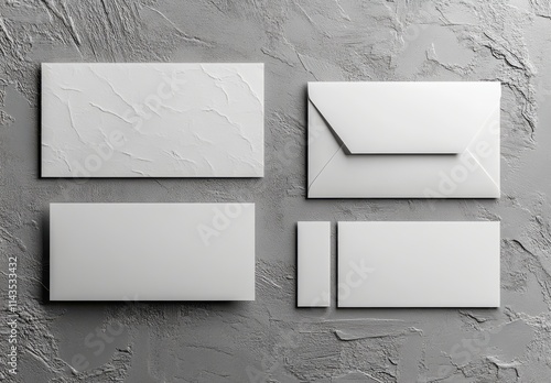 Minimalist Mockup of Blank White Envelopes and Cards on Textured Gray Background for Branding and Design Presentations