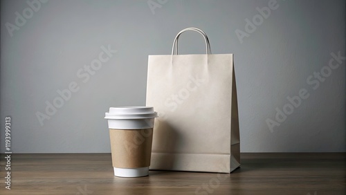 Minimalist Mockup of White Paper Bag and Coffee Cup for Branding and Packaging Design