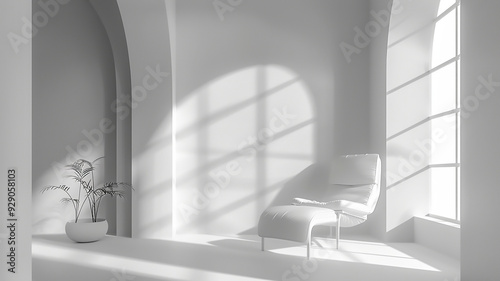 Minimalist Modern Interior with White Armchair and Sunlight