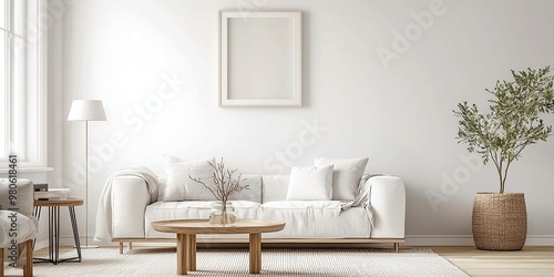 Minimalist modern living room interior background, Scandinavian style, 3D render. AI generative
