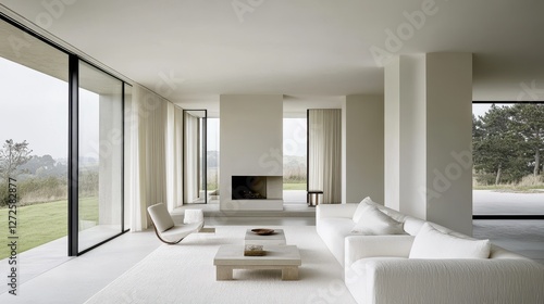Minimalist Modern Living Room with Fireplace and Countryside View