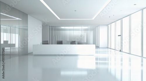 Minimalist Modern Office Lobby: A minimalist office lobby design showcases sleek lines, expansive windows, and a pristine white color palette, creating a sense of calm and professionalism.
