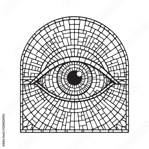 Minimalist Mosaic Eye in Arc Window, Symbol of Divine Watchfulness