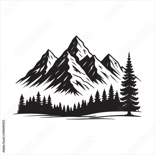 Minimalist Mountain Range Silhouette with Pine Trees