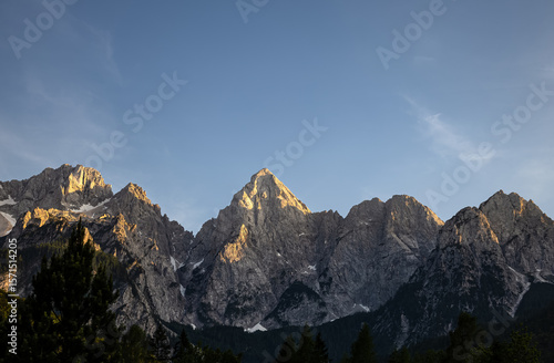 minimalist nature background with mountain peaks under clear sunset sky