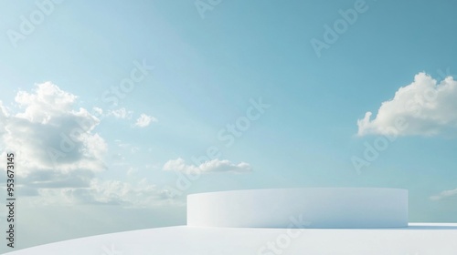 Minimalist outdoor architectural scene with white walls and blue sky background