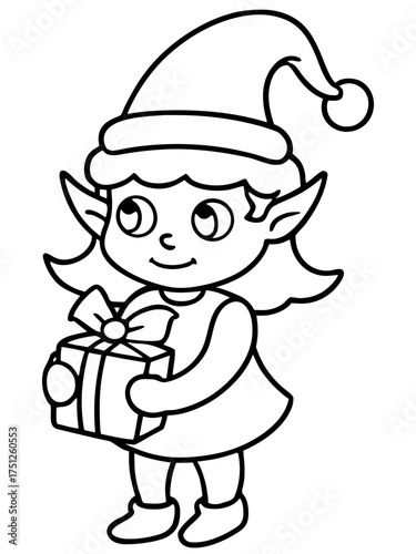 Minimalist outline baby elf holding gift vector illustration scalable icon for festive occasions and celebrations isolated on transparent background
