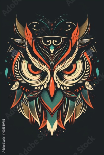 Minimalist owl head adorned with vibrant tribal designs.