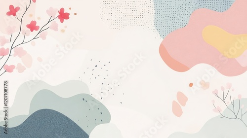 Minimalist pastel Japanese cloud motifs and Sakura petals, light and elegant background