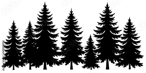 "Minimalist Pine Forest Silhouette – High Contrast Black Evergreen Tree Illustration"