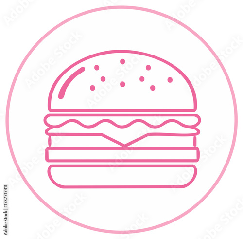 Minimalist Pink Hamburger Line Art Icon for Fast Food Menu or App