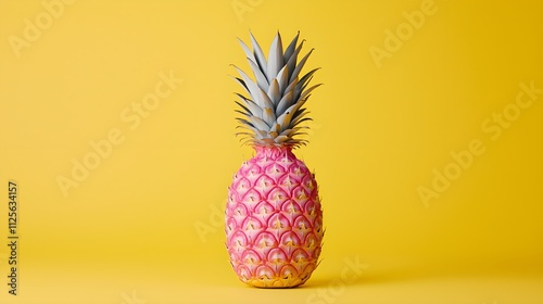Minimalist pink pineapple set on a plain yellow background, evoking simplicity with contrasting colors for a bold, graphic visual