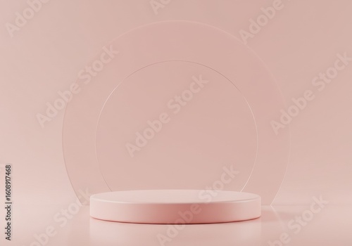 Minimalist Pink Podium on a Soft Pink Circular Background, Product Display Platform