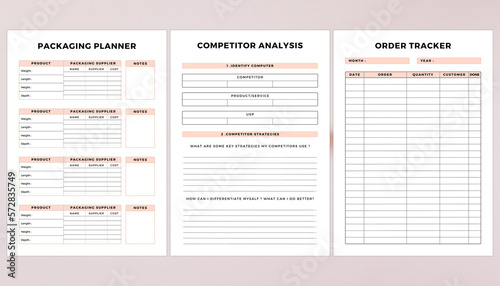 Minimalist planner pages templates. Printable Life & Business Planner Set. Life and business planner. Printable Page Packaging Planner, Competitor Analysis, Order Tracker.