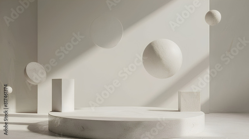 Minimalist Podium Geometric Display with Natural Shadows