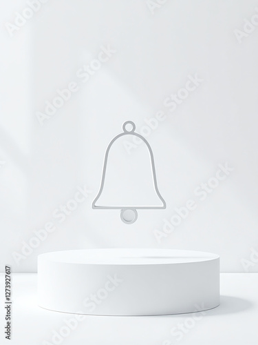 Minimalist Podium With A Single Outlined Easter Bell, White Background Complex Shading, Excessive Detail 00002