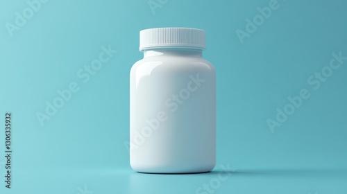 minimalist presentation of a glossy white supplement bottle against a serene light blue backdrop perfect for showcasing healthcare products