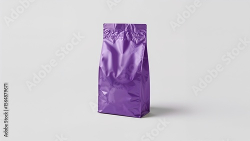 Minimalist purple foil bag mock-up on white background
