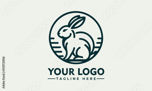 Minimalist rabbit sitting inside circular emblem in side profile, stylized animal icon. Nature concept