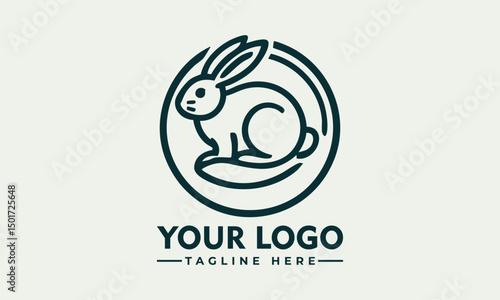 Minimalist rabbit sitting inside circular emblem in side profile, stylized animal icon. Nature concept