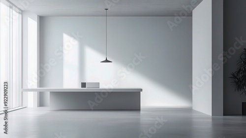 Minimalist Reception: A sun-drenched, modern reception area awaits, featuring sleek lines, a pristine white palette, and a serene ambiance.