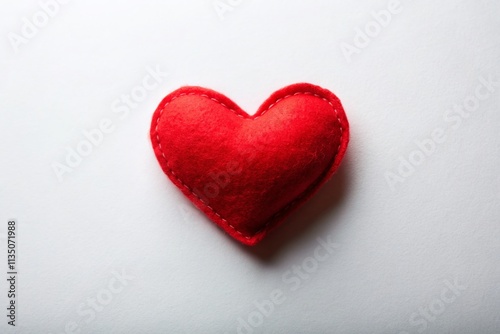Minimalist Red Felt Heart Isolated on White Background for Love and Affection Conceptual Stock Photo, Perfect for Valentine's Day and Romantic Themes