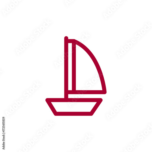 Minimalist red sailboat line art icon representing summer vacation, sea travel, and leisure activities