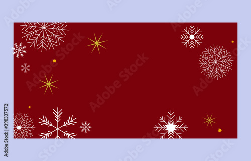 minimalist red vector background with glowing white snowflakes and yellow stars, digitally created on a tablet, hand drawn