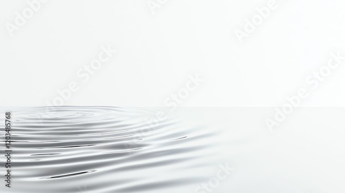 Minimalist ripple effect on a calm water surface against a plain white background, conveying tranquility and simplicity.