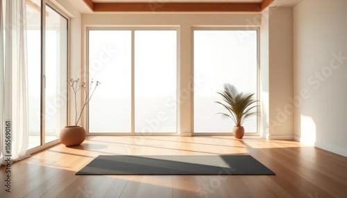 Minimalist Room with Concrete Wall and Large Windows and Plants Wallpaper Background