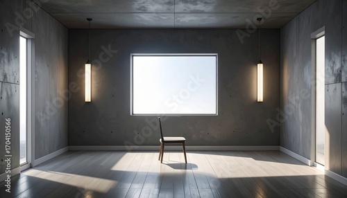 Minimalist Room With Single Chair And Large Window.