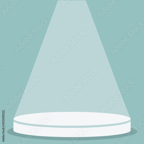 Minimalist Round Podium with Spotlight on Pale Blue Background Ideal for Product Presentation and Display Advertising and Marketing