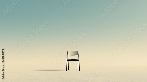 Minimalist scene with a single chair standing alone on a wide open surface, symbolizing solitude, simplicity, and clean visual design.