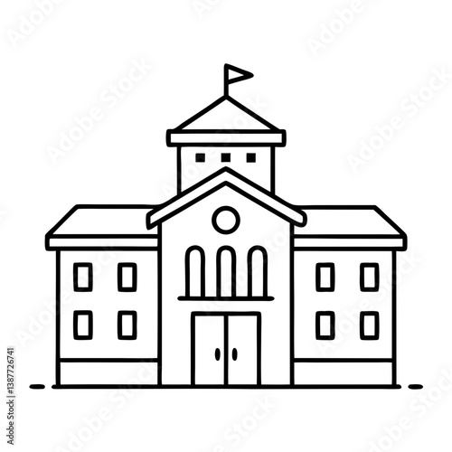 Minimalist School Building Coloring Book Page Line Art Drawing
