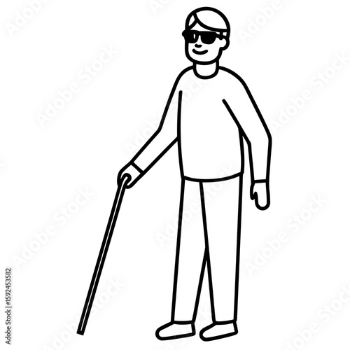 Minimalist single line illustration of a visually impaired person with a walking stick