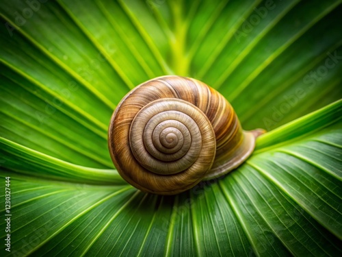 Minimalist Snail on Leaf - Nature Macro Photography Stock Photo