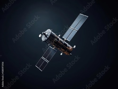 Minimalist solarpowered satellite, futuristic clean energy space technology visualization