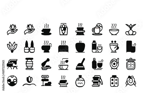 Minimalist Spa, Wellness, and Relaxation Themed Vector Icon Set, Featuring Editable Line Art for Branding and Marketing Designs